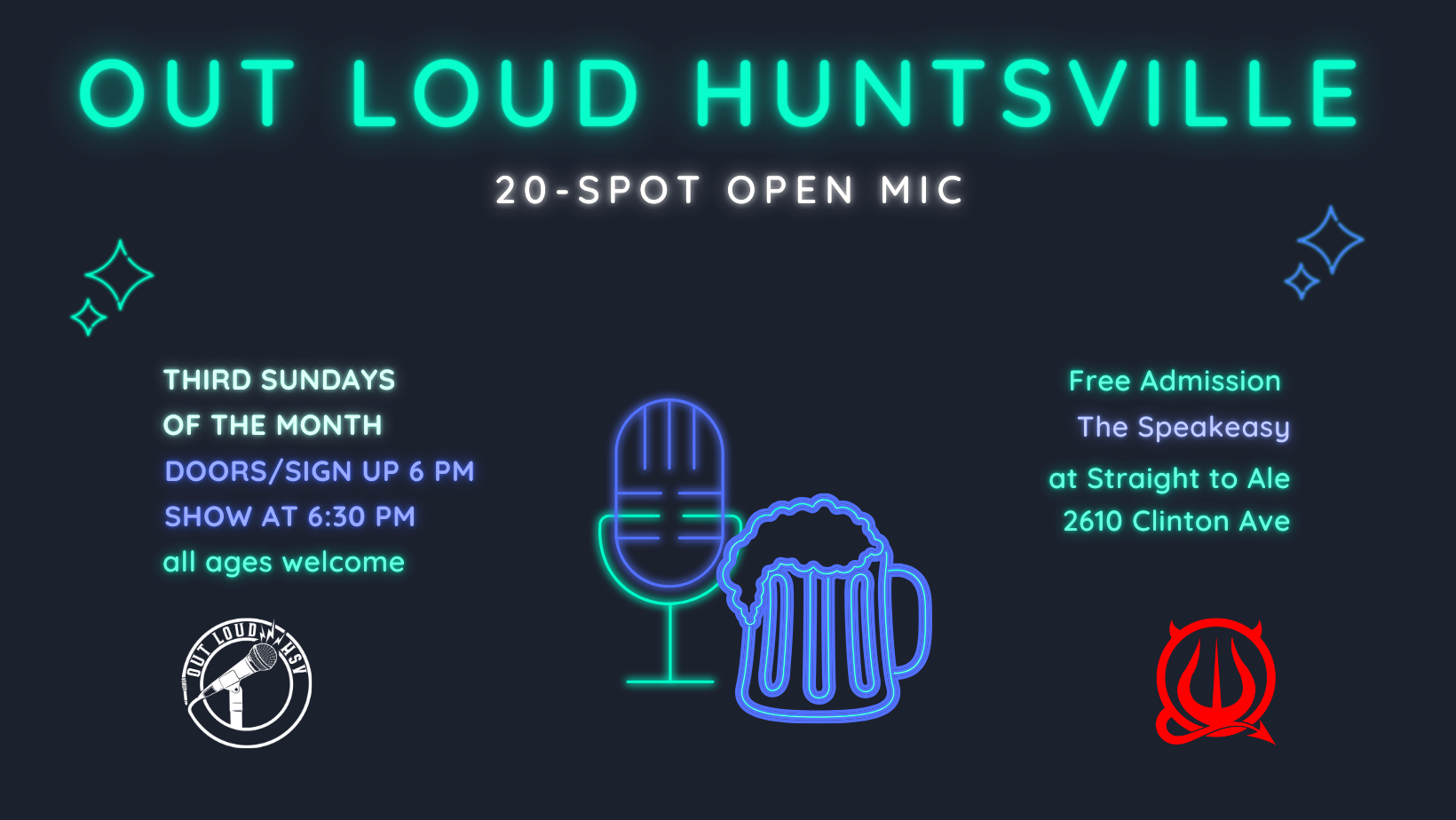 Out Loud Huntsville will continue hosting events at Straight to Ale on the Third Sundays of the month, so mark your calendars!
